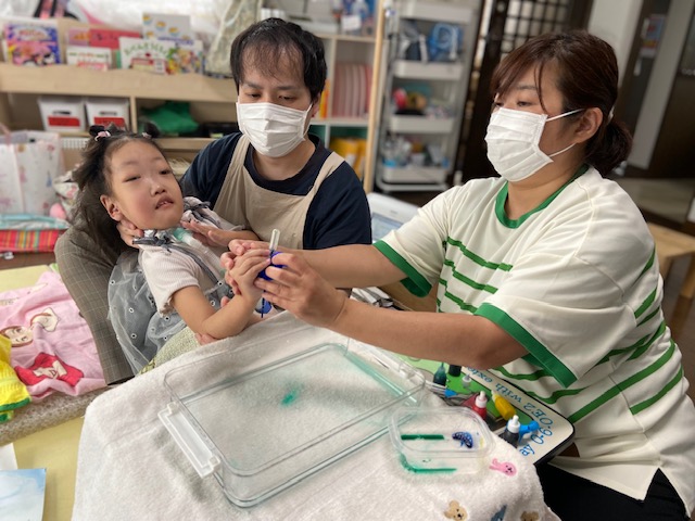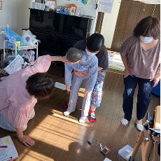 <療育活動への参加支援・医療的ケア> 花色に来たこども達が、療育活動に参加できるように 身体状態を把握し、活動参加への調整を行います。 医療的ケアは保護者様の指示に従い実施します。 |