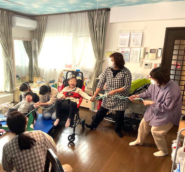 保育士の遊びに、リハビリ職先頭にたち自然に取り入れて楽しく行う「遊びリテーション」を取り入れています。